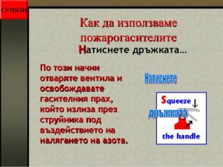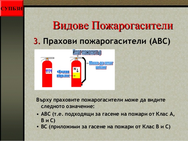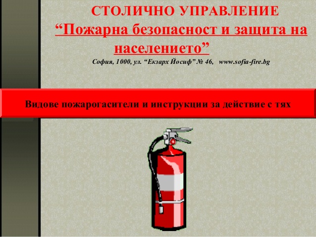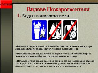 Предлагаме Ви да разгледата отделните слайдове от презентацията "Видове пожарогасители и инструкции за действие с тях"