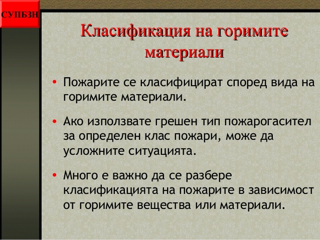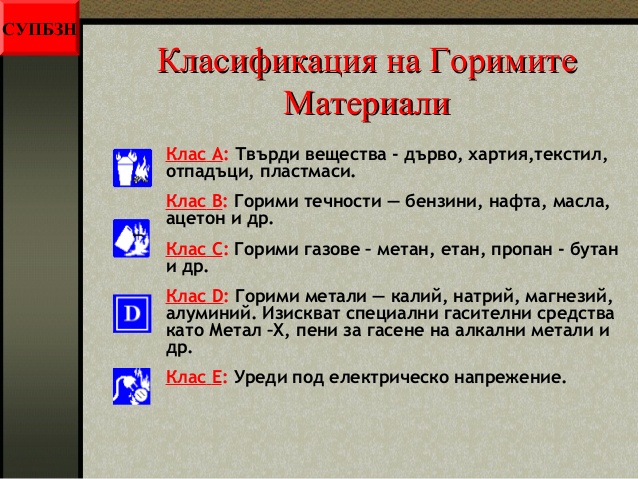 - класификация на горимите материали;