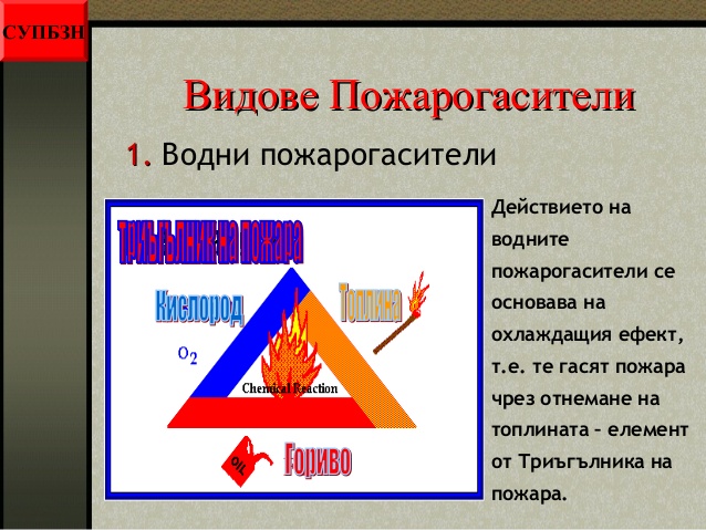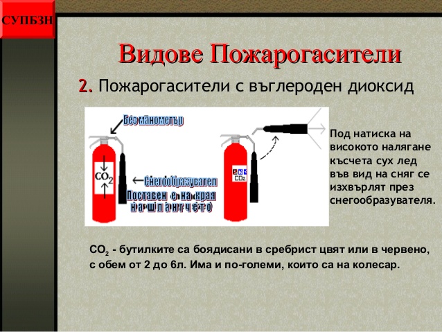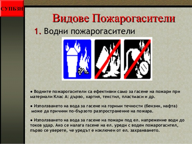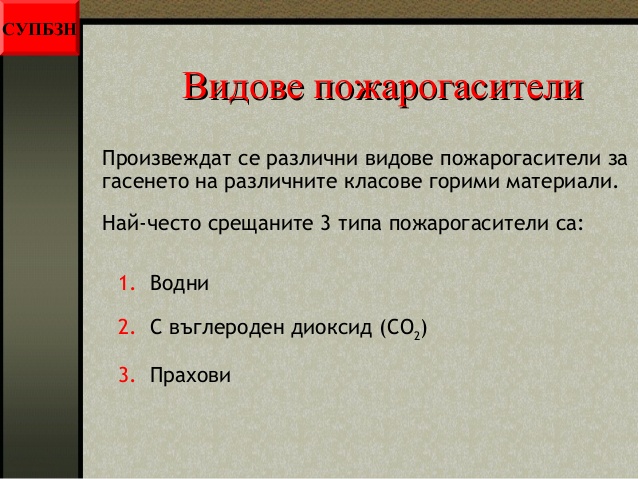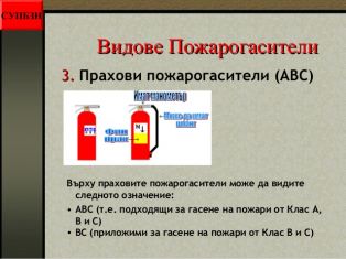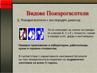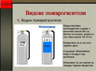 - видовете пожарогасители;