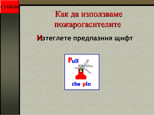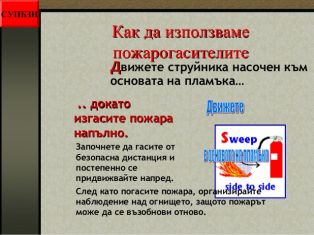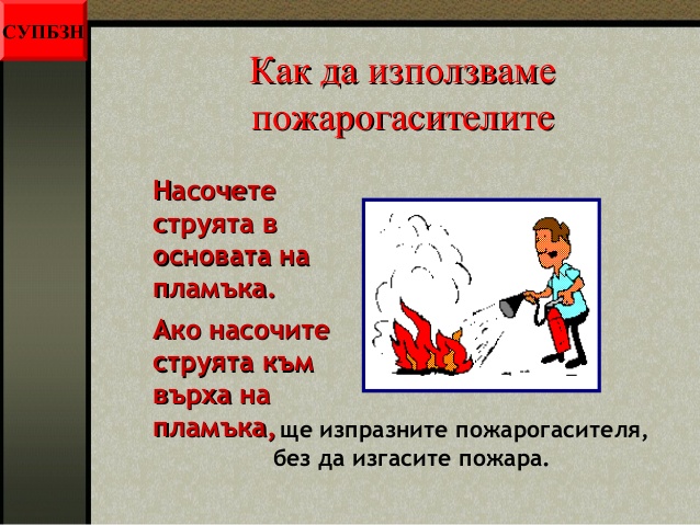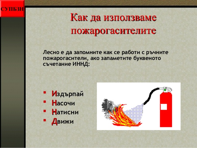 - как да използваме пожарогасителите;