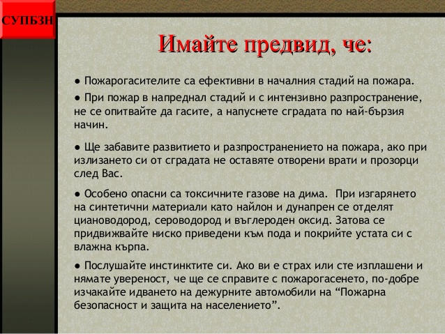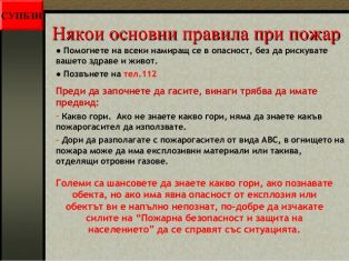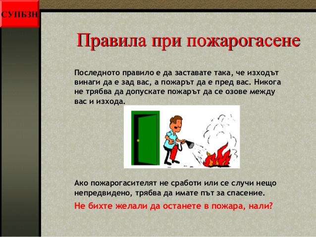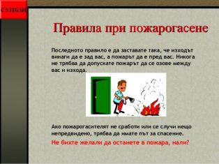 - някои основни правила при пожар;