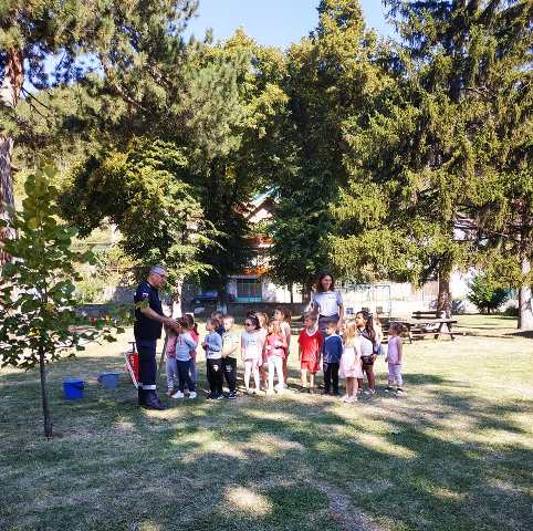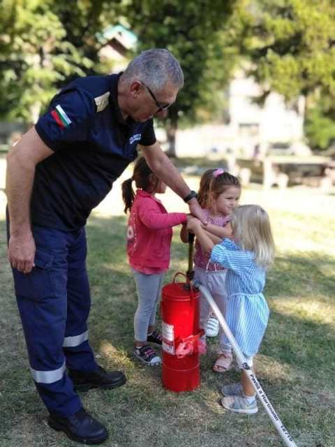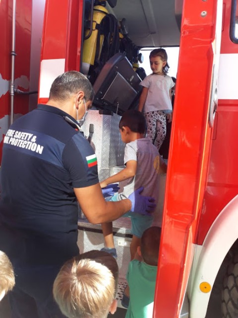 Направена бе демонстрация на пожарна и спасителна техника, както и обучение на децата как да се предпазват от пожари в градината и в дома.