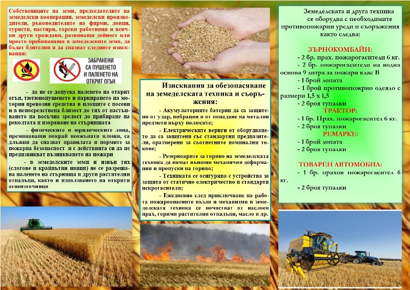 За това е необходимода се спазват правилата и нормите за пожарна безопаснаст при извършване на всякакви дейности в земеделските земи.