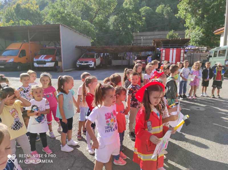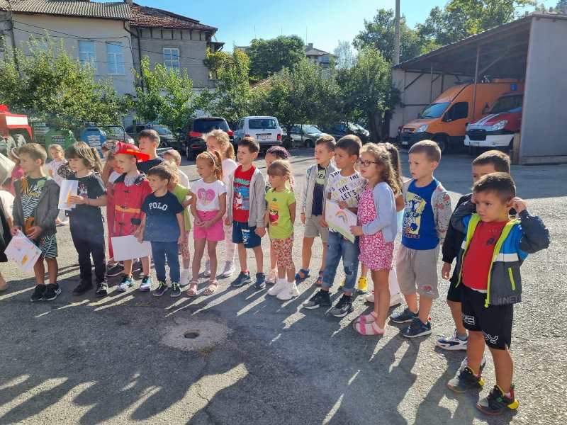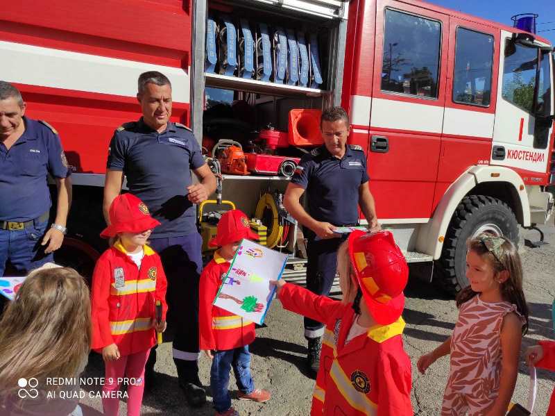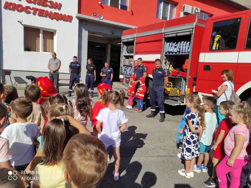 Посещението е част от дейностите в седмицата на пожарна безопасност и се организира по случай предстоящия професионален празник - 14 септември. (на посещение бяха и деца от  ДГ "Мечта", а служители на РСПБЗН -Кюстендил проведоха учебна евакуация в ДГ ' Еделвайс")