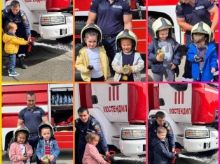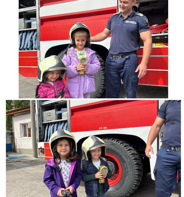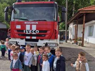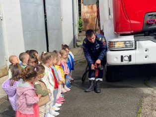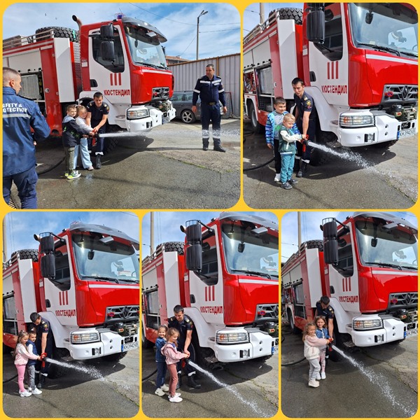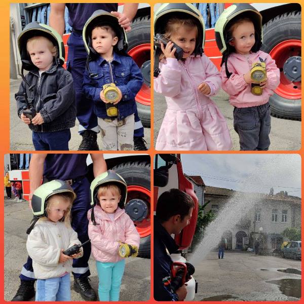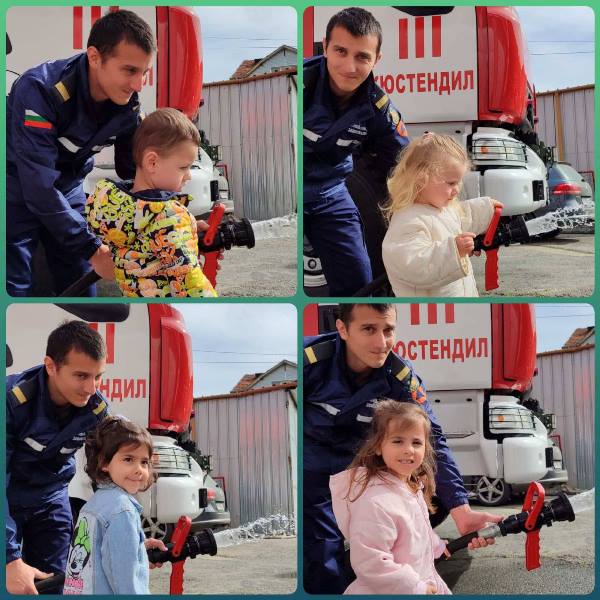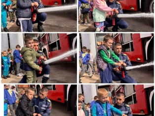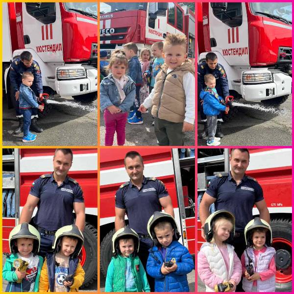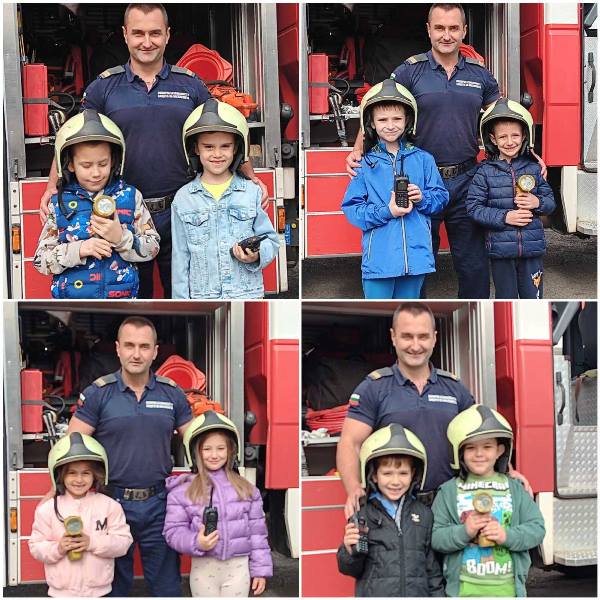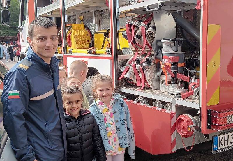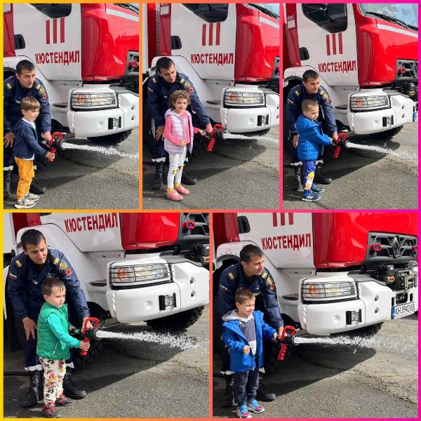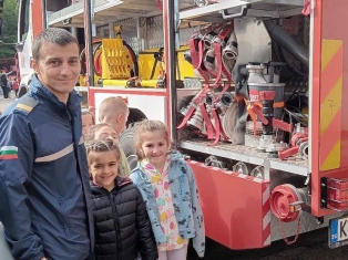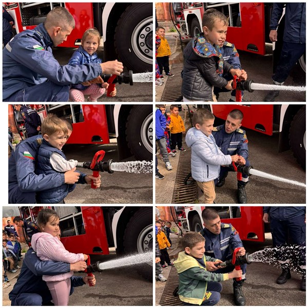 Експерти от Районна служба "Пожарна безопасност и защита на населението“ също запознаха децата отблизо с противопожарното оборудване. А по-късно малчуганите с особен интерес се докоснаха до истинската работа при гасене на пожари.