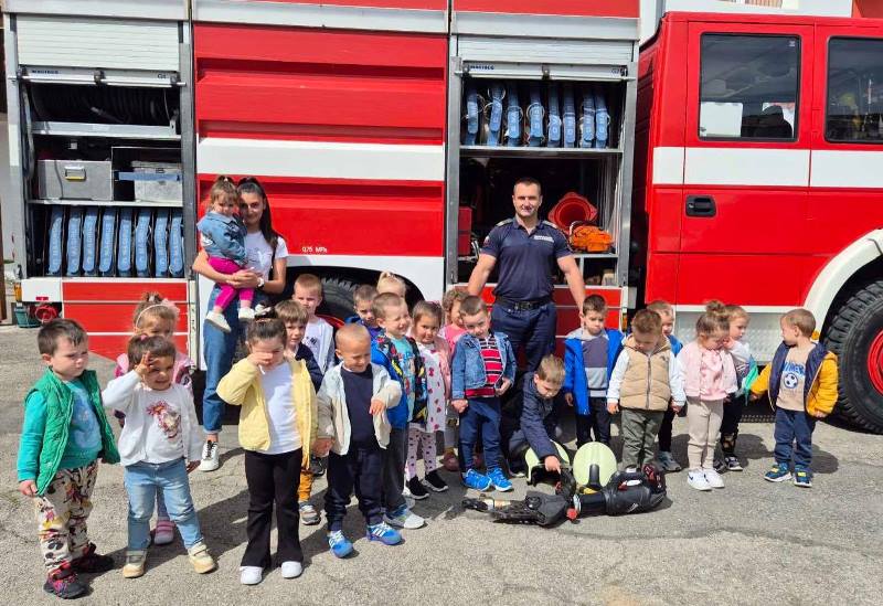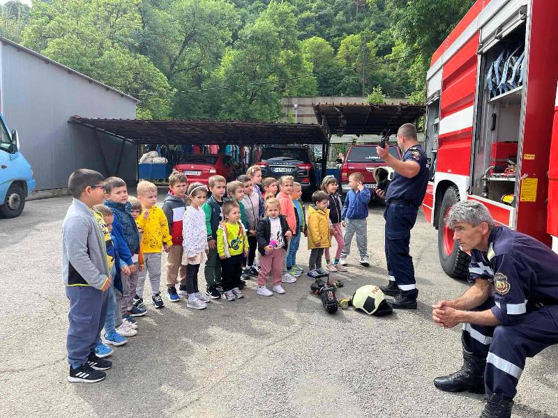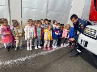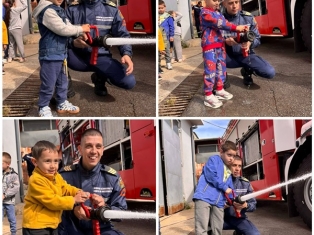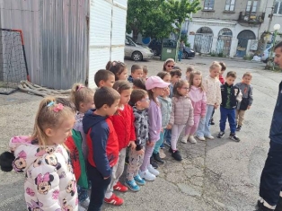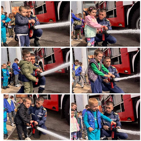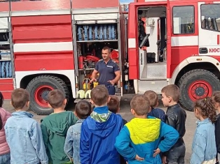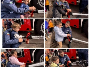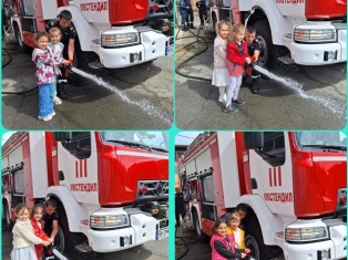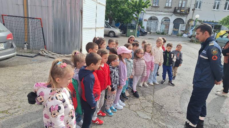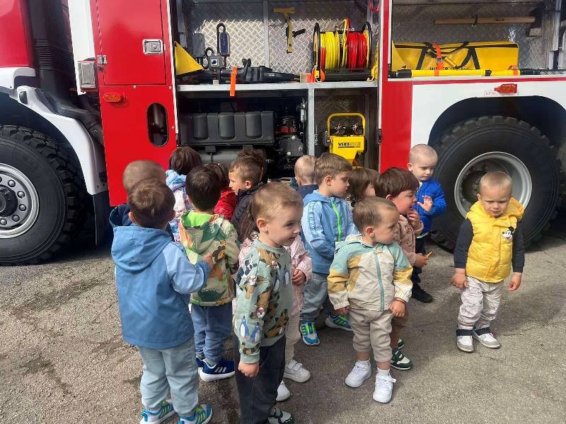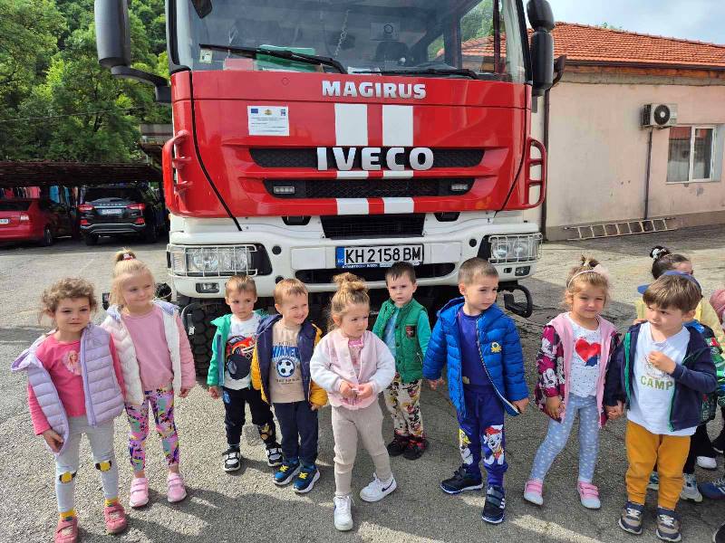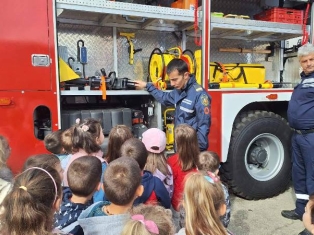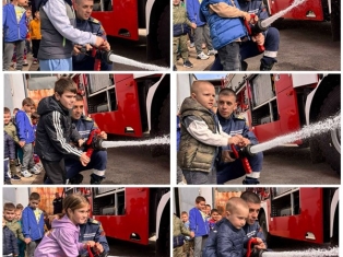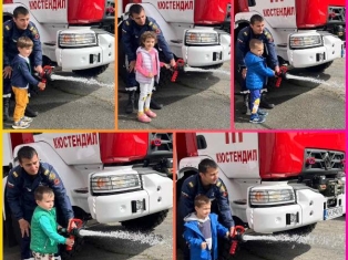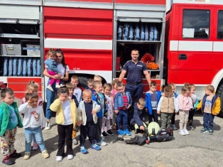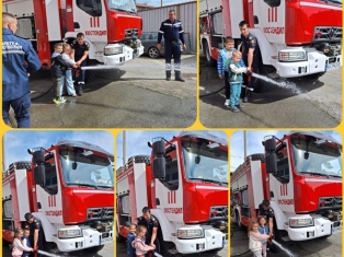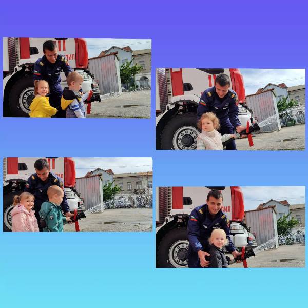 Експерти от Районна служба "Пожарна безопасност и защита на населението“ също запознаха децата отблизо с противопожарното оборудване. А по-късно малчуганите с особен интерес се докоснаха до истинската работа при гасене на пожари.