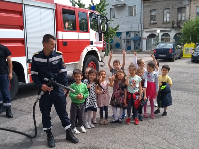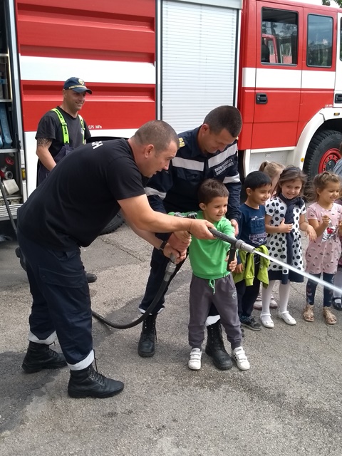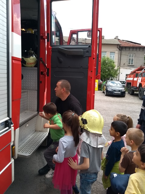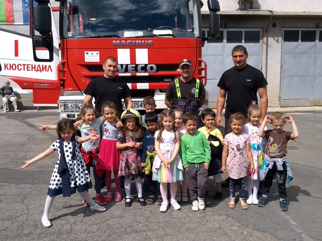 Всеки един от група "Зайче" на ДГ " Еделвайс" - Кюстендил изстреля силна струя от пожарникарския шанг и чу различните звукови сигнали на пожарната кола.