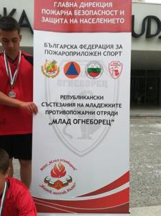 В конкуренцията на още 27 отбора нашите участници - отборът-победител от областния етап на състезанието „Млад огнеборец“ от ЕГ „Д-р Петър Берон“ се класира на пето място в дисциплината „400 м щафетно бягане с препятствия“, на 8-мо място в дисциплината „Бойно разгръщане на състезателна пътека“.