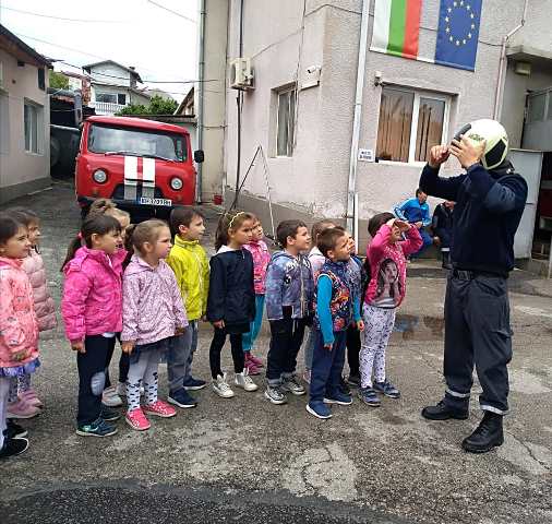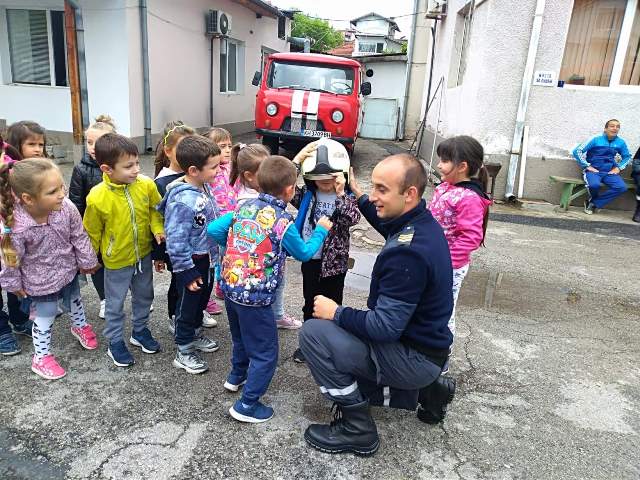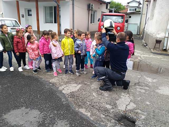 Днес - 15 май 2019 година служители на РСПБЗН - Кюстендил посрещнаха деца от група "Синчец" на ДГ "Слънце" - .