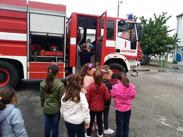 За децата от детска градина " Слънце" - Кюстендил денят 15.05.2019 година беше изпълнен с много интересни и незабравими преживявания. Те посетиха РС ПБЗН гр. Кюстендил. Взаимоотношенията на детската градина с районната служба са приятелски и са насочени към възпитание на уважение към професията на пожарникаря, както и провеждане на навременна превантивна работа с подрастващите за преодоляване на пожари и последствията от тях. При посещението си в РС ПБЗН децата и имаха възможност да се срещнат с екипа на смелите огнеборци, които им разказаха за своята достойна за уважение професия. Любезните домакини с удоволствие представиха на децата различни съоръжения за противопожарна защита и им разказаха за славните подвизи на кюстендилските пожарникари.