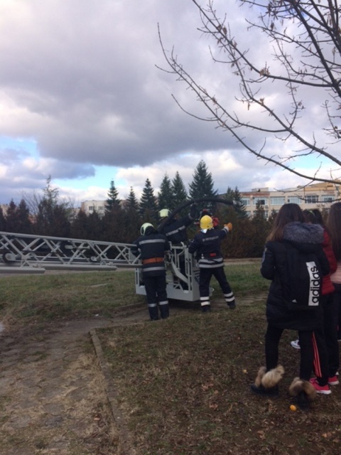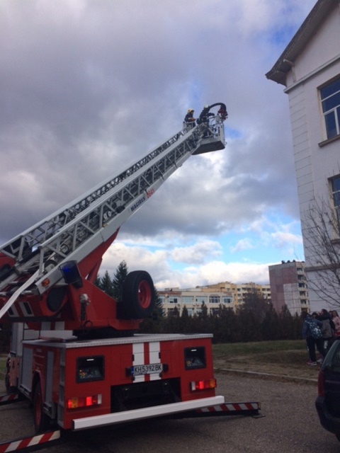 За потушаване на “пожара” бе използвана специализирана техника и автомеханична стълба. Учениците и персонала от езикова гимназия получиха един „ урок“ по безопасно поведение и необходими действия при бедствие.
